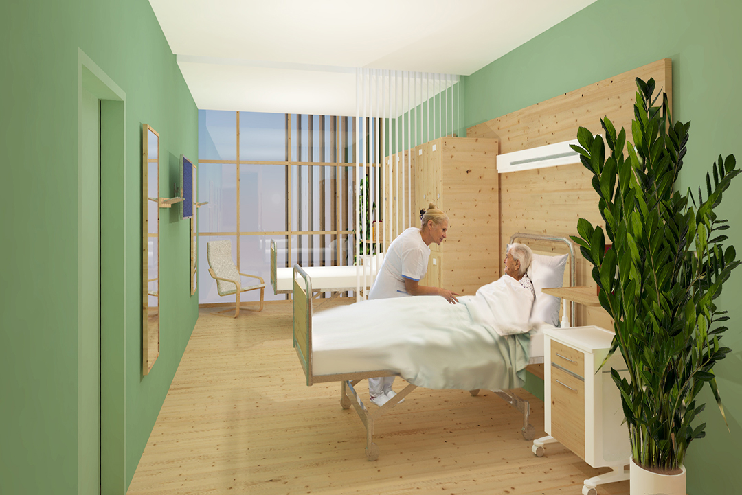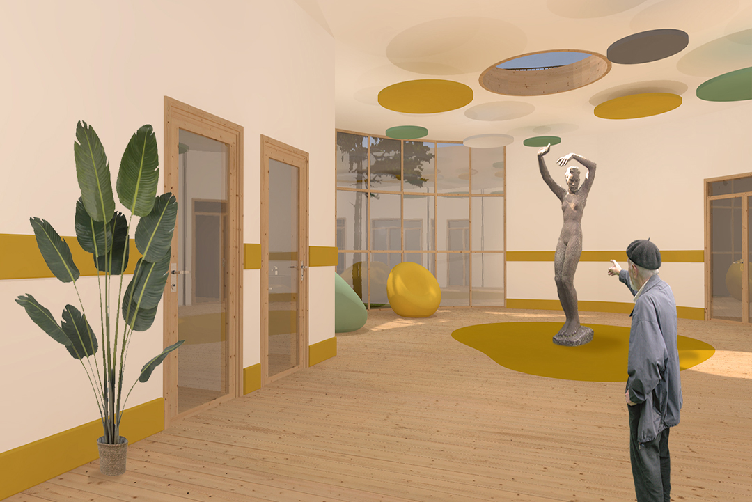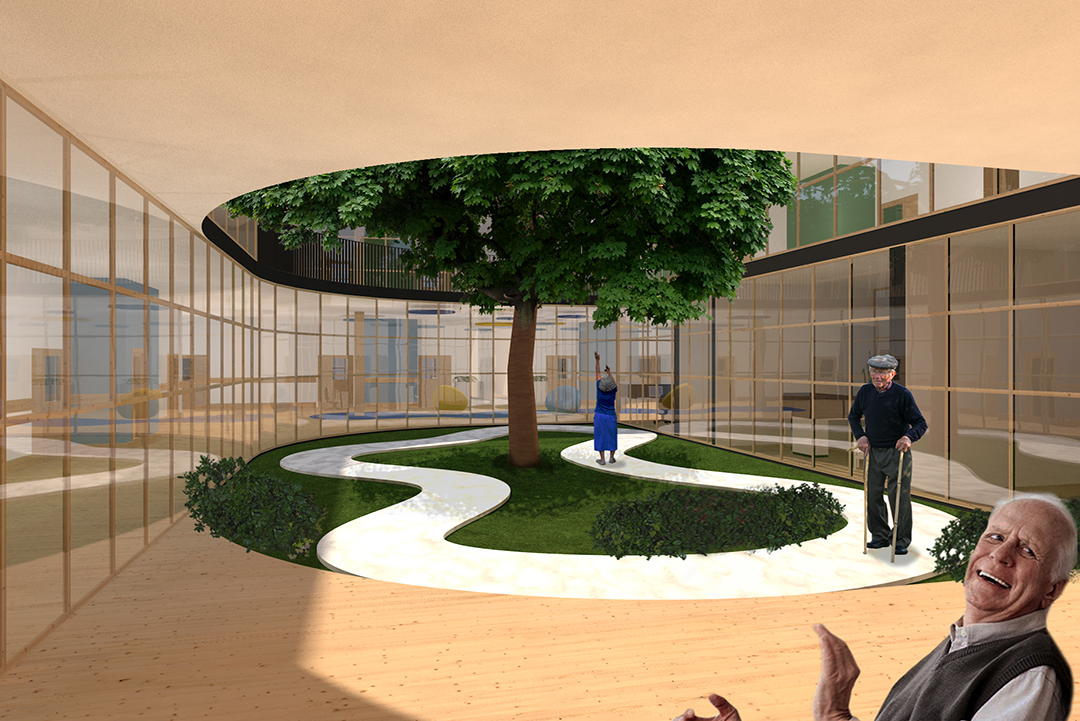 La proposta valorizza la presenza del verde come elemento generativo dell’architettura, attraverso coperture verdi, giardini terapeutici e un ampio apporto di luce naturale, contribuendo al benessere e all’orientamento degli utenti. Progettato secondo criteri nZEB, l’edificio integra soluzioni ad alte prestazioni energetiche, strategie bioclimatiche passive e un’attenta organizzazione dei percorsi, garantendo sostenibilità ambientale, efficienza gestionale e qualità spaziale.