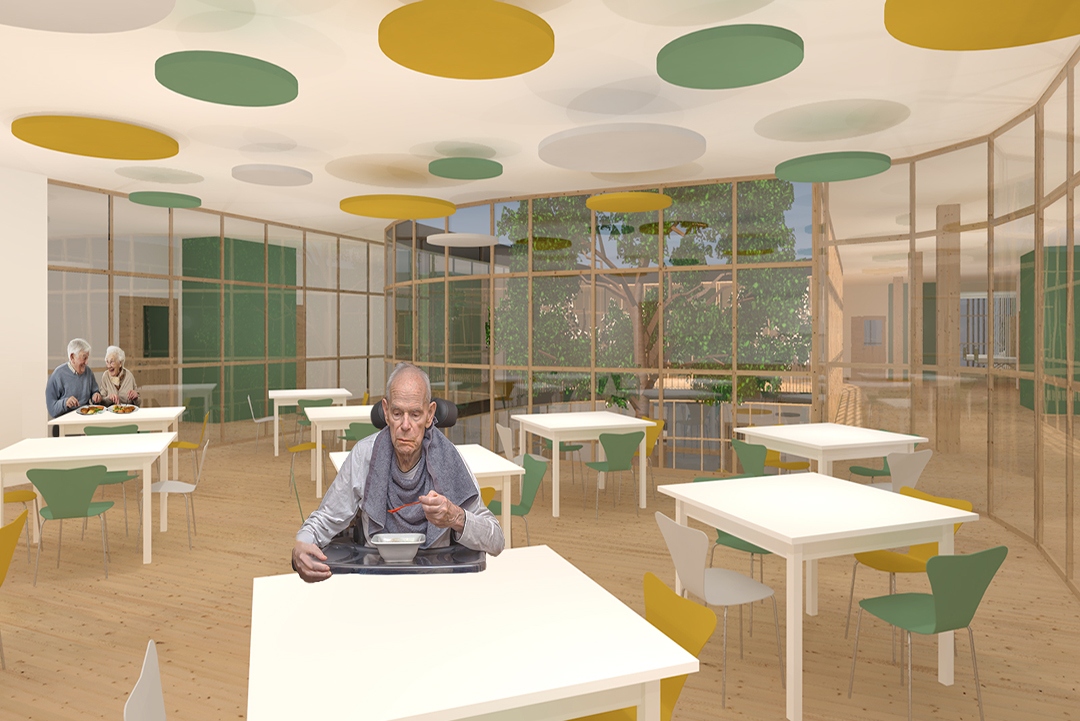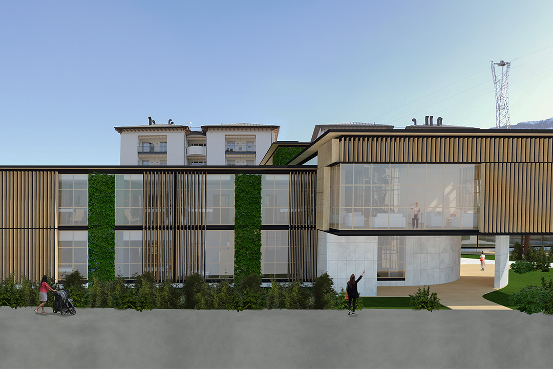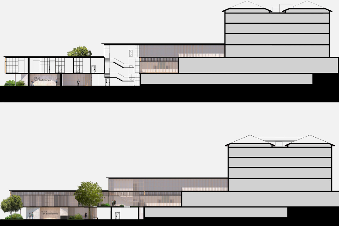 Il progetto per il concorso RSA San Bartolomeo prevede l’ampliamento della struttura esistente attraverso la realizzazione di nuovi nuclei residenziali, un volume centrale destinato all’ingresso e ai servizi comuni e un Centro Diurno Alzheimer autonomo. L’intervento si fonda sull’equilibrio tra efficienza funzionale e umanizzazione degli spazi di cura, con l’obiettivo di creare un ambiente accogliente, domestico e fortemente integrato con il contesto paesaggistico.